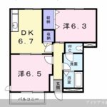 | 間取り | 2DK(洋6.8・洋6.3・DK7) | 駐車場 | あり(縦列2台 3,300円) |