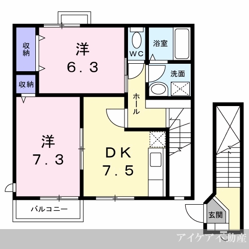 | 間取り | 2DK(洋7.3・洋6.3・DK7.5) | 駐車場 | あり(2,200円~3,300円) |